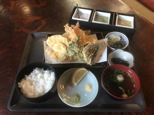 3種類のお塩(抹茶・山椒・カレー)で食べる揚げたての天ぷらは絶品です。