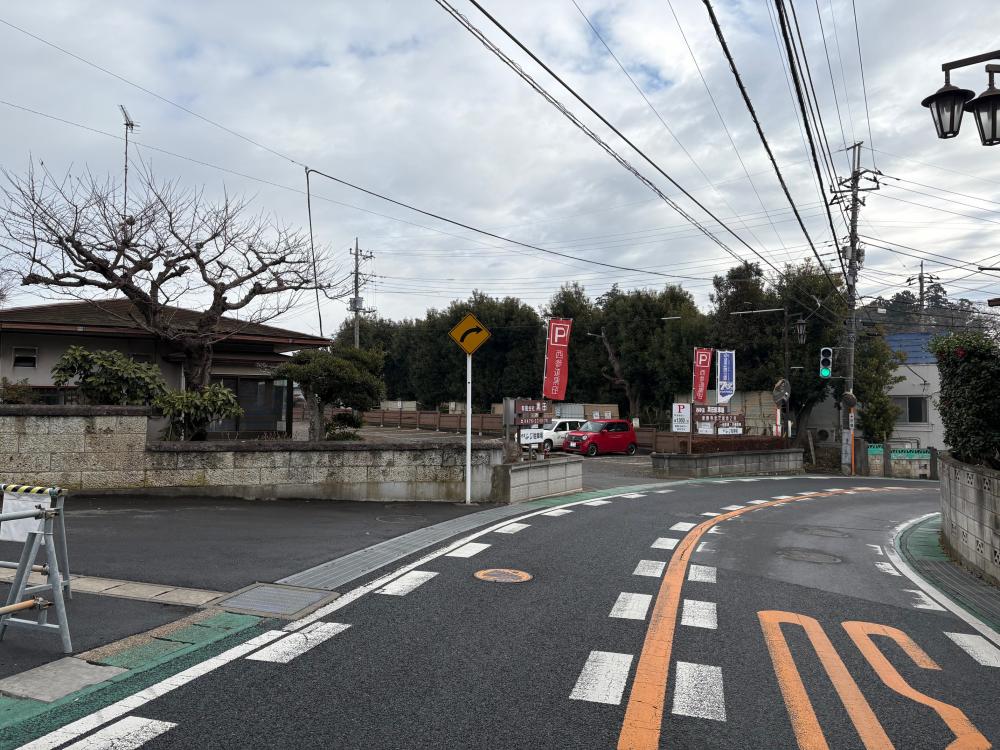 新勝寺西門へ一番近い駐車場。徒歩2分。
