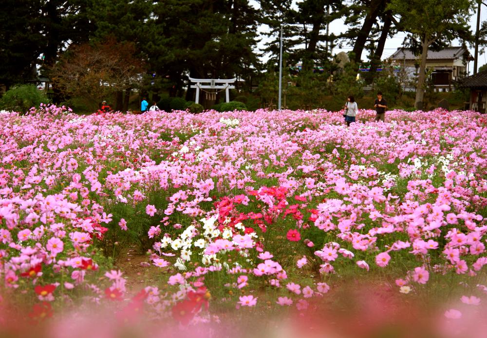 波斯菊的照片是10月中旬的Jinbei Park的样子。