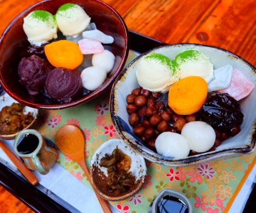 一邊觀察四季各有特色的草花,一邊可以享受抹茶或者甜味。