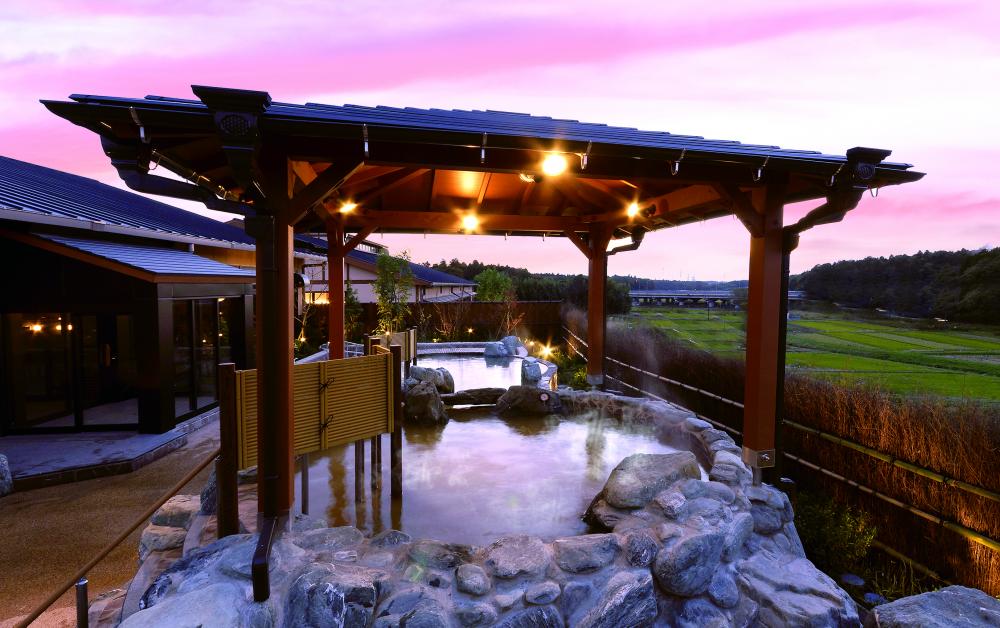 到在在眼前伸展的田園以及遠處富士。在爽快的大預料的酒酒井溫泉,請享受安樂的1日。
