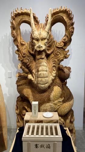 有用链锯雕刻超过树龄100年的龙杉(和歌山)的神身体,